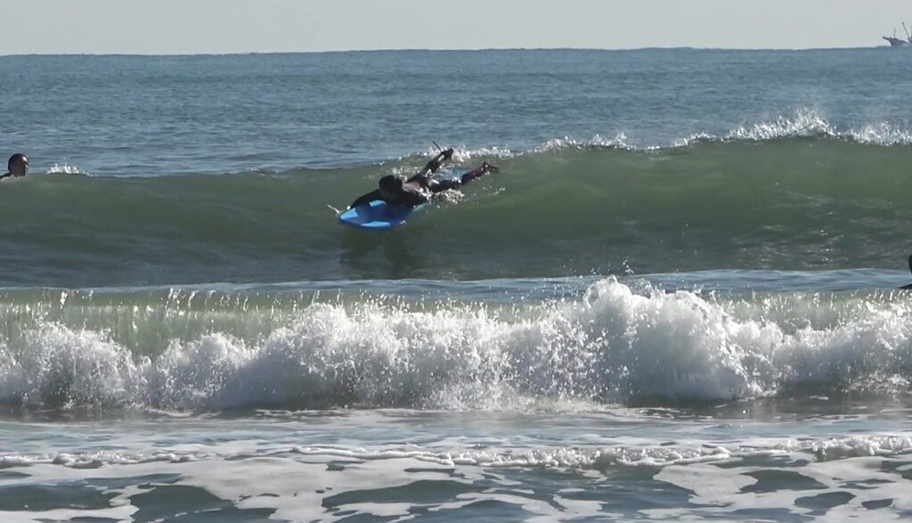 波が後ろから来た瞬間、その浮力の反発をしっかり受け止め、
